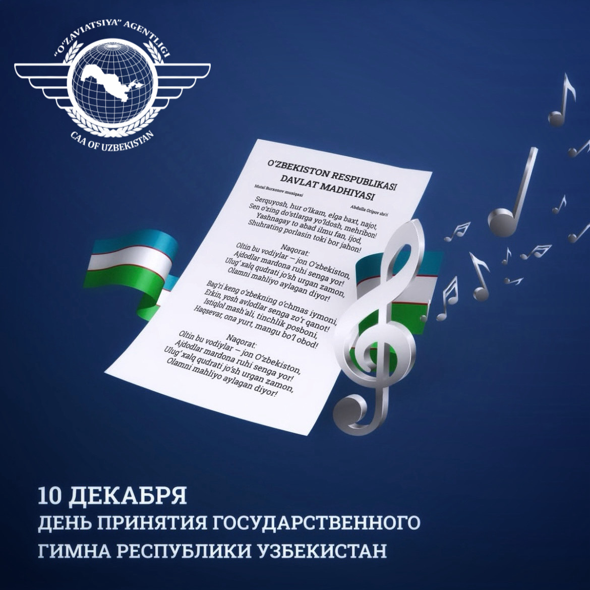 10 декабря день принятия Государственного гимна Республики Узбекистан