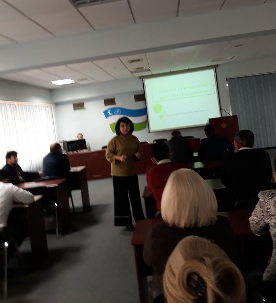 В рамках реализации мероприятий «Дорожной карты» Концепции повышения правовой культуры в обществе в 2019 году, утверждённой Указом Президента Республики Узбекистан от 09.01.2019 г. № УП-5618 «О коренном совершенствовании системы повышения правосознания и правовой культуры» в Агентстве «Узавиация» 21.11.2019г. состоялась лекция на тему «Этика и психология делового общения».