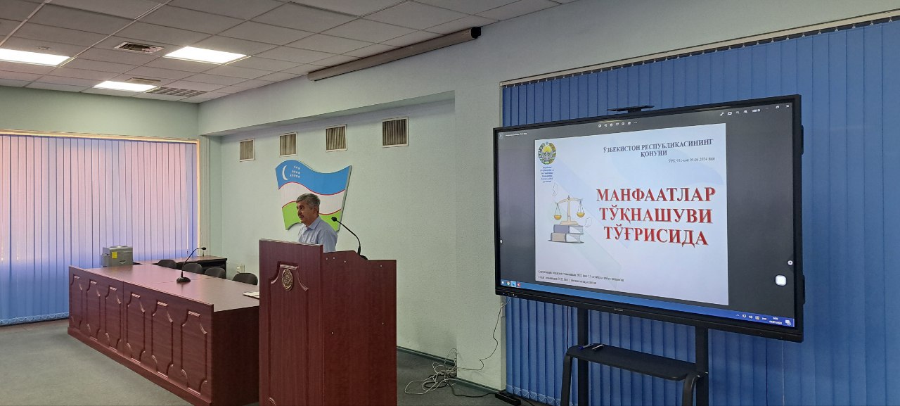 В ходе мероприятия заместитель директора Агентства "Узавиация" О. Лим и Главный специалист по противодействию коррупции О. Пулатов ознакомили учасников мероприятия с целью и сферой действия Закона, с основными определениями понятия конфликта интересов, с причинами возникновения конфликта интересов и его видами.