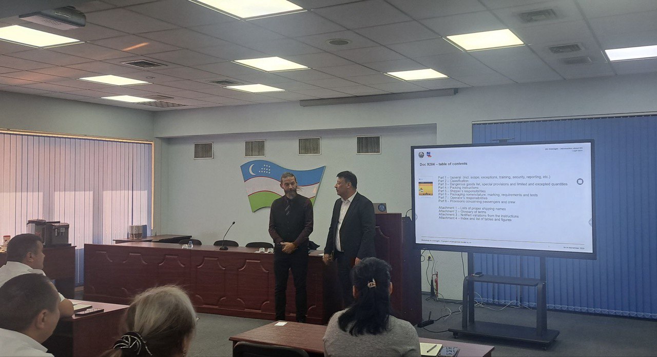 В рамках реализации совместного проекта Агентства «Узавиация» и ИКАО Стратегический план действий (COSPA), в Агентстве «Узавиация» с 10-14 ноября проводится семинар-трейнинг по организации перевозок Опасных грузов воздушным транспортом. Семинар-тренинг организован в сотрудничестве с авиационной администрацией Франции.