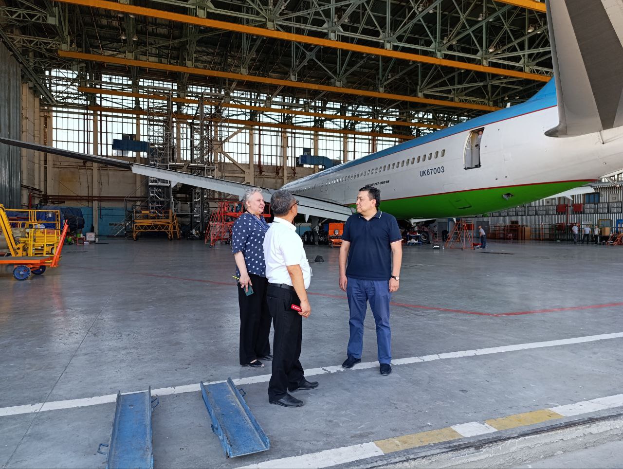В целях обеспечения надлежащего обслуживания воздушных судов, а также для мониторинга выполнения требований нормативно-правовых документов, регулирующих деятельность гражданской авиации Республики Узбекистан, заместителем директора Агентства «Узавиация» О. Лим проведено выездное изучение состояния обеспечения обслуживания воздушных судов в ООО “Uzbekistan Airways Technics”.