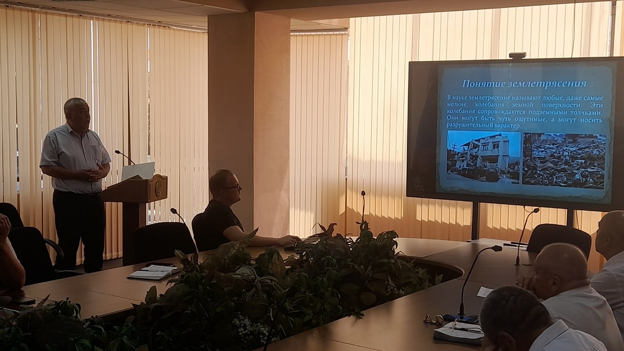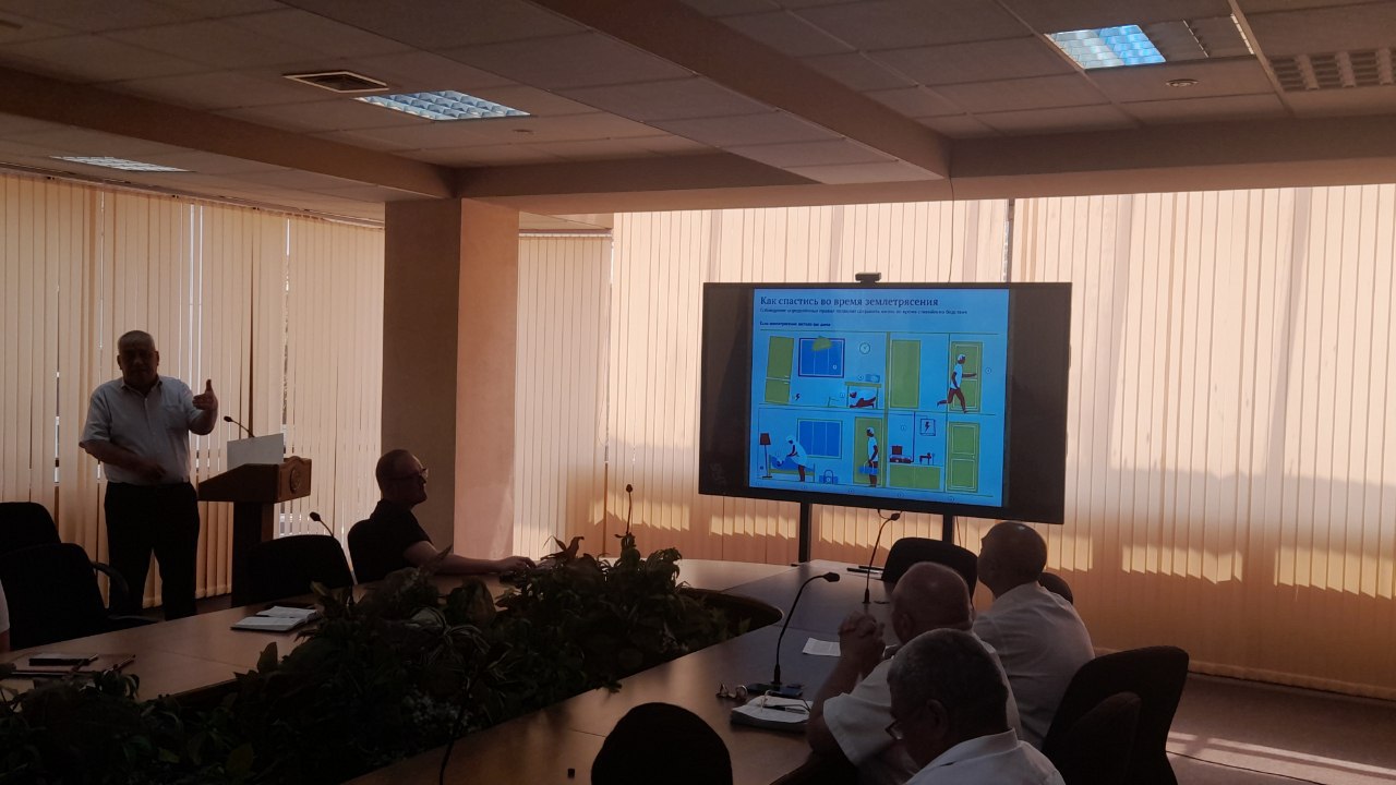 В ходе совещания была продемонстрирована презентация на тему «ЗЕМЛЕТРЯСЕНИЯ». В данной презентации продемонстрировано землетрясения, причины его возникновения, виды измерения, а также меры необходимые предпринять во время землетрясения. Также до сотрудников Агентства доведена основная информация по плану эвакуации в агентстве, основные выходы, места для укрытия и продемонстрирована специальное звуковое информирование по общей связи при землетрясении.