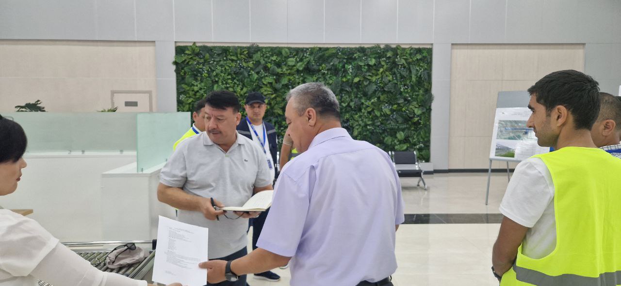 Аэродромга ташриф давомида учиш-қониш йўлаги, перрон ва харакатланиш йўлакларининг асфальт қопламасини ётқизиш ишлари ўрганилди, шу билан бирга олиб борилаётган ишларни парвозлар хавфсизлиги ва авиация хавфсизлиги талабларига мувофиқлиги масалалари кўриб чиқлди.